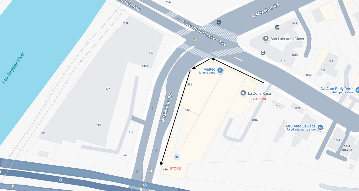 Please park in the spaces reserved for MATTEO Clients next to La Zona Rosa. Once parked, follow the signs toward the intersection and then toward the 101. The MATTEO Flagship Store is located just before the overpass.