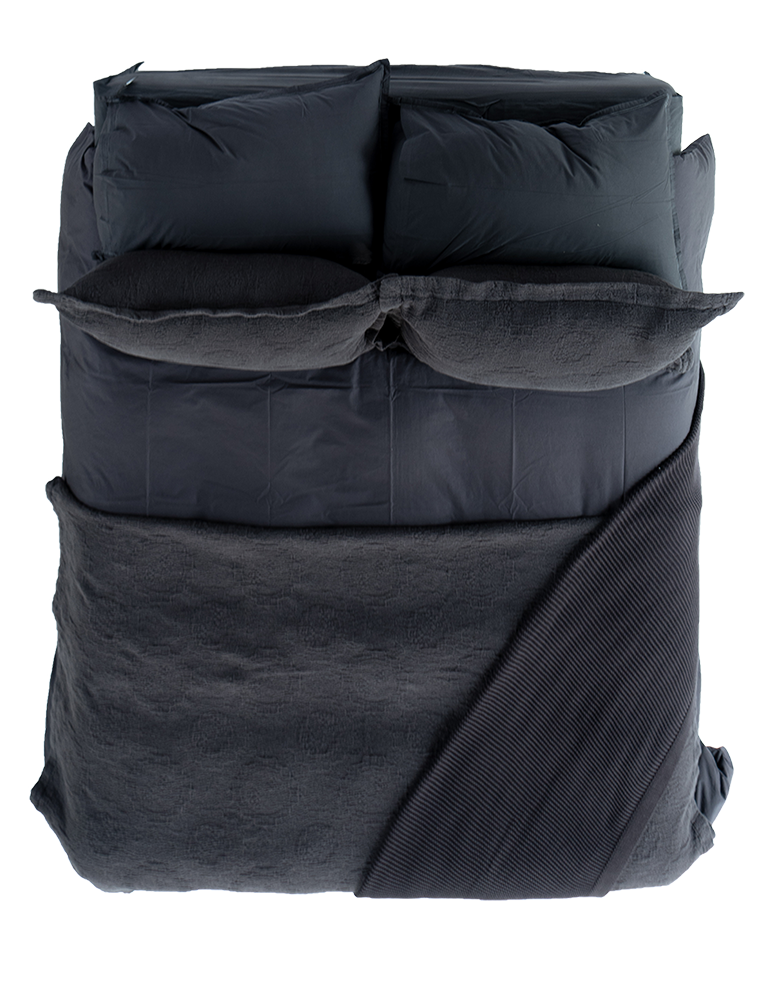 Matelasse is an incredible weaving technique invented by the French, using thick filling yarn to mimic an antique hand quilt. We worked with one of the finest Italian weavers in Northern Italy to create our newest Antik Matelasse. The greige or raw loomstate fabric comes to life and softens perfectly with our special garment washing technique. Made using both Cotton and Linen yarns, the different fibers reaction to the garment dye bath results in a beautifully subtle color variegation throughout the pattern.