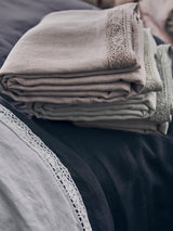 Cluny flat sheets are finished with a delicate lace border within a hidden seam.