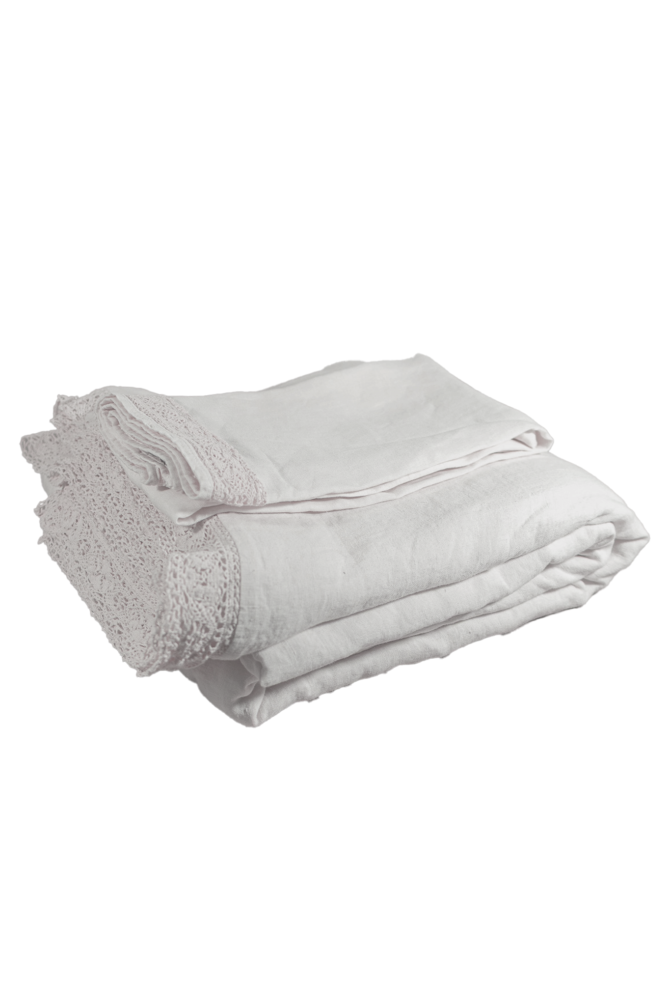 Our Cluny Collection starts with a base of our Vintage Linen fabric and adds a delicate 100% Cotton cluny lace border.