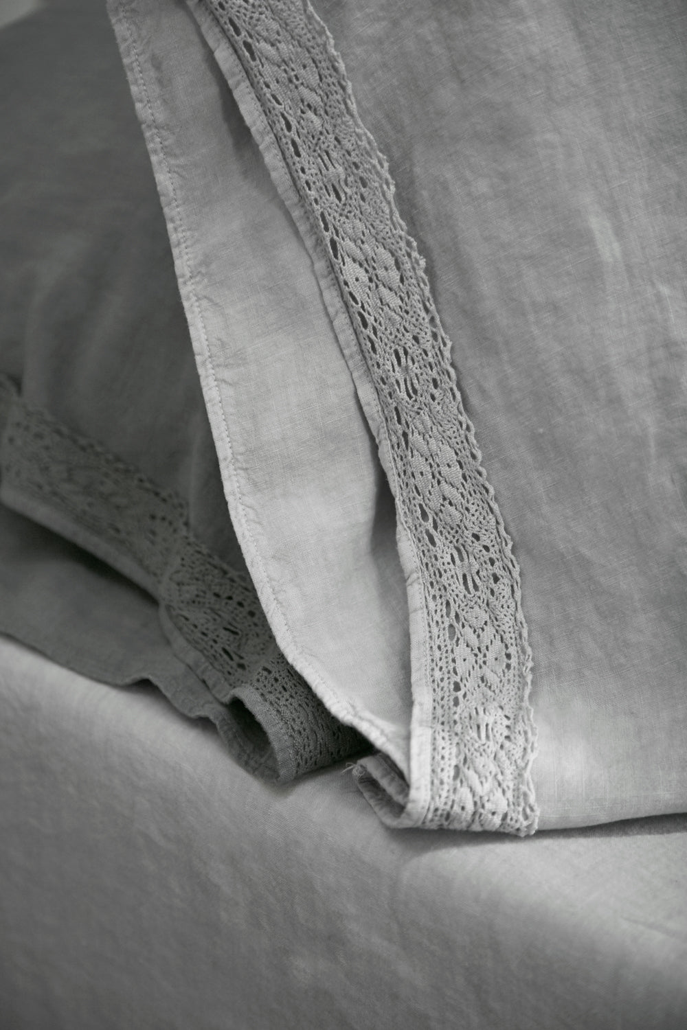 Cluny pillowcases are finished with a delicate lace border within a hidden seam.