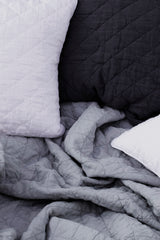 Our Ida quilted linen provides both warmth and decoration. It is constructed using two layers of our Vintage Linen along with a special batting and a unique quilting thread. The 3 inch diamond quilt is a variation on the more regular box quilts seen in the market. Ida will withstand home laundering, which makes it ideal for for your bed or your couch and chair. We worked hard to get the right balance of softness, warmth, and body you want in any quilt.
