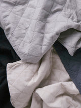 Our Ida quilted linen provides both warmth and decoration. It is constructed using two layers of our Vintage Linen along with a special batting and a unique quilting thread. The 3 inch diamond quilt is a variation on the more regular box quilts seen in the market. Ida will withstand home laundering, which makes it ideal for for your bed or your couch and chair. We worked hard to get the right balance of softness, warmth, and body you want in any quilt.