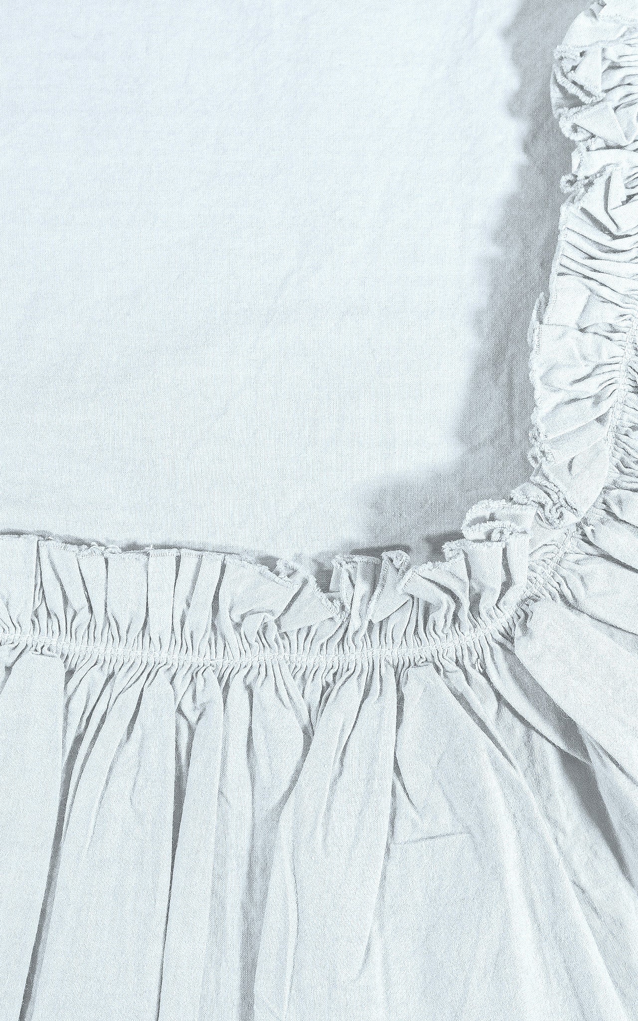A cotton version of our classic Tat Linen collection! Our Tat collection is a true labor of love. We took a traditional ruffle detail and deconstructed it. We exposed the fine stitching details that are usually hidden underneath the seam and left the edges raw. We spent months adjusting the ruffle length and sewing tension.We even had to develop special ruching and shirring machines along with a novel cutting technique to get the ruffle just ruffle just right. It was worth it!