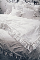 Our Tat Cotton duvet cover has a tattered ruffle border and a hidden YKK zipper.