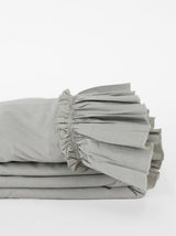 A cotton version of our classic Tat Linen collection! Our Tat collection is a true labor of love. We took a traditional ruffle detail and deconstructed it. We exposed the fine stitching details that are usually hidden underneath the seam and left the edges raw. We spent months adjusting the ruffle length and sewing tension.We even had to develop special ruching and shirring machines along with a novel cutting technique to get the ruffle just ruffle just right. It was worth it!