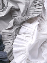 A cotton version of our classic Tat Linen collection! Our Tat collection is a true labor of love. We took a traditional ruffle detail and deconstructed it. We exposed the fine stitching details that are usually hidden underneath the seam and left the edges raw. We spent months adjusting the ruffle length and sewing tension.We even had to develop special ruching and shirring machines along with a novel cutting technique to get the ruffle just ruffle just right. It was worth it!