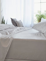We at MATTEO tend to prefer a lived-in look, as such, you don't find us ironing our sheets too frequently. If you prefer a crisp looking bed, our cotton bed linens should be pressed while slightly damp using the Lightweight Cotton or Medium setting.