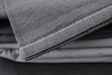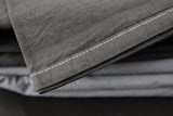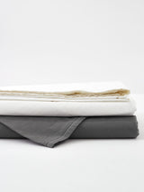 Tru flat sheets are finished with a minimal 1/4" hem. Darker colors feature a contrasting white top stitch detail.