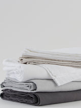 Vintage Linen flat sheets are finished with a minimal 1/4" hem. Darker colors feature a contrasting white top stitch detail.